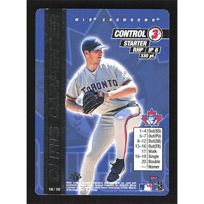 This is a 2000 MLB Showdown Pennant Run 1st Edition Chris Carpenter baseball card. The card is #146 and pictures show condition. Team(s): Toronto Blue Jays