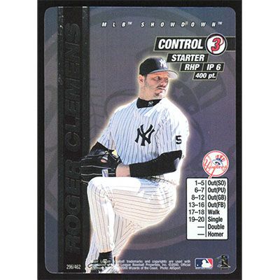 This is a 2000 MLB Showdown Unlimited Roger Clemens Foil baseball card. The card is #296 and pictures show condition.