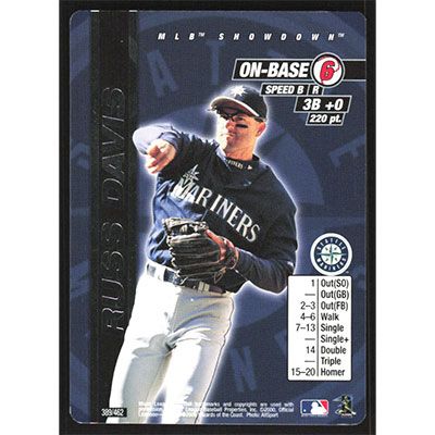 This is a 2000 MLB Showdown Unlimited Russ Davis baseball card. The card is #389 and pictures show condition.