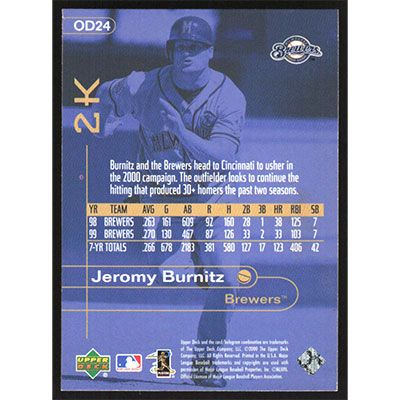 This is a 2000 Opening Day 2K Jeromy Burnitz Upper Deck baseball card. The card is #OD24 and pictures show condition.