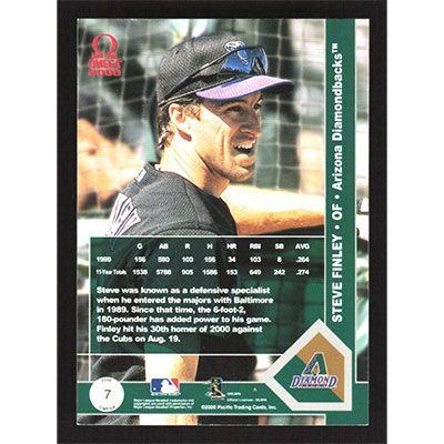 This is a 2000 Pacific Omega Steve Finley baseball card. The card is #7 and pictures show condition.