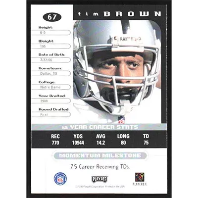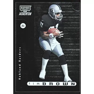 This is a 2000 Playoff Momentum Tim Brown football card. The card is #67 and pictures show condition.