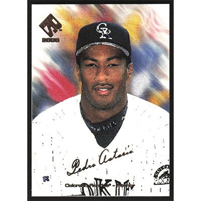 This is a 2000 Private Stock Pedro Astacio baseball card. The card is #44 and pictures show condition.