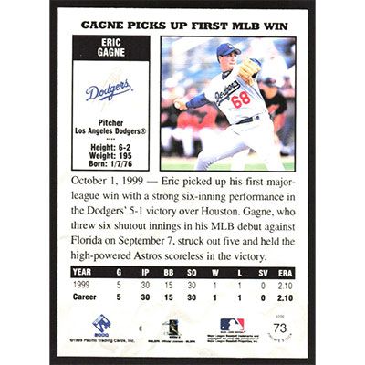 This is a 2000 Private Stock Eric Gagne short print baseball card. The card is #73 and pictures show condition.