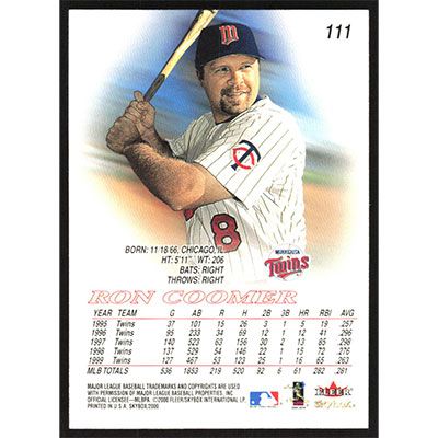 This is a 2000 SkyBox Ron Coomer baseball card. The card is #111 and pictures show condition.