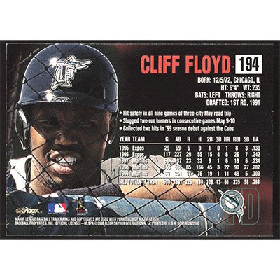 This is a 2000 SkyBox Dominion Cliff Floyd baseball card. The card is #194 and pictures show condition.
