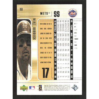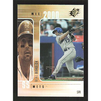 This is a 2000 SPx Mike Bordick baseball card. The card is #168 and pictures show condition.
