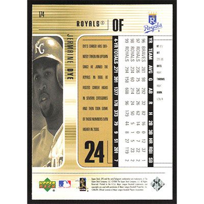 This is a 2000 SPx Jermaine Dye baseball card. The card is #174 and pictures show condition.