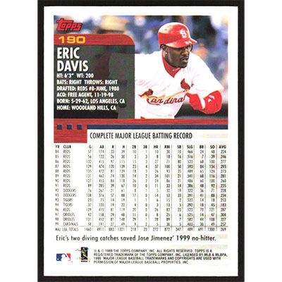 This is a 2000 Topps Eric Davis baseball card. The card is #190 and pictures show condition.