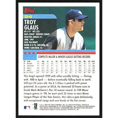 This is a 2000 Topps Troy Glaus baseball card. The card is #94 and pictures show condition.