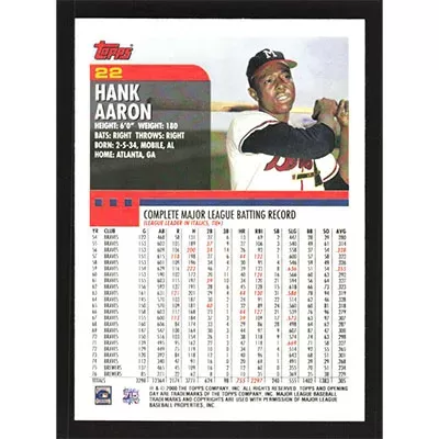This is a 2000 Topps Opening Day Hank Aaron baseball card. The card is #22 and pictures show condition.