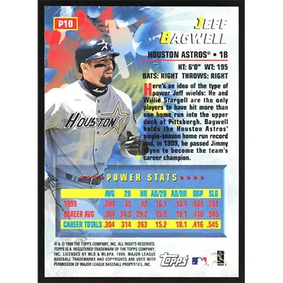This is a 2000 Topps Power Players Jeff Bagwell baseball card. The card is #P10 and pictures show condition.