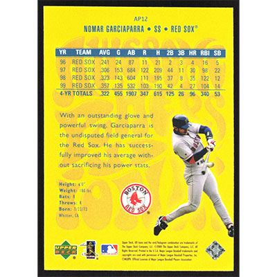 This is a 2000 UD Ionix Awesome Powers Nomar Garciaparra baseball card. The card is #AP12 and pictures show condition.