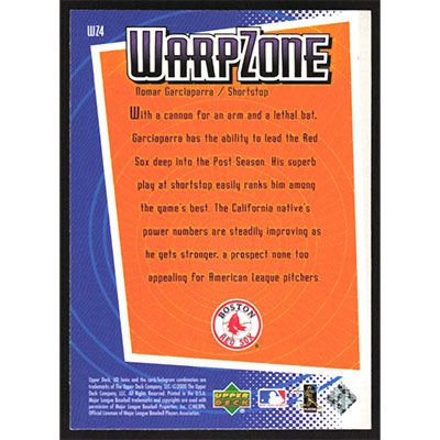 This is a 2000 UD Ionix Warp Zone Nomar Garciaparra baseball card. The card is #WZ4 and pictures show condition.