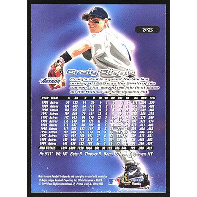 This is a 2000 Ultra Craig Biggio baseball card. The card is #71 and pictures show condition.