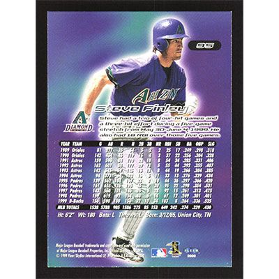 This is a 2000 Ultra Steve Finley baseball card. The card is #95 and pictures show condition.