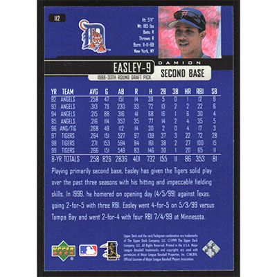 This is a 2000 Upper Deck Damion Easley baseball card. The card is #112 and pictures show condition.