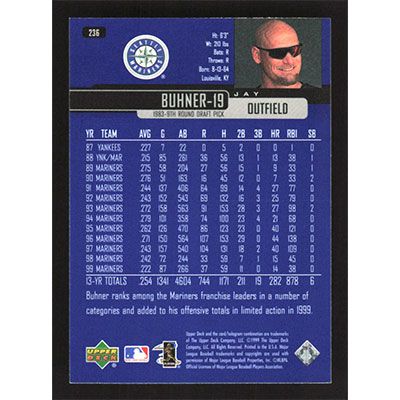 This is a 2000 Upper Deck Jay Buhner baseball card. The card is #236 and pictures show condition.