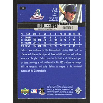 This is a 2000 Upper Deck David Dellucci baseball card. The card is #311 and pictures show condition.