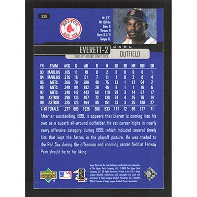 This is a 2000 Upper Deck Carl Everett baseball card. The card is #339 and pictures show condition.