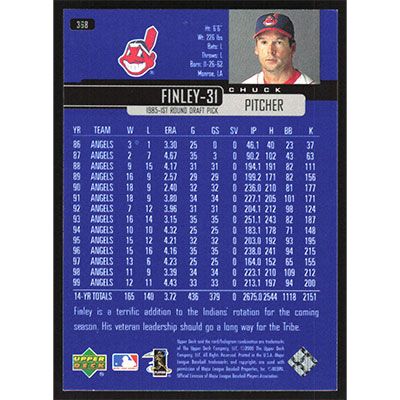 This is a 2000 Upper Deck Chuck Finley baseball card. The card is #368 and pictures show condition.