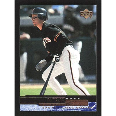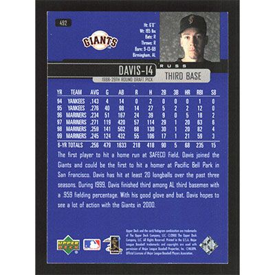 This is a 2000 Upper Deck Russ Davis baseball card. The card is #492 and pictures show condition.