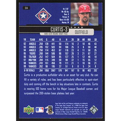 This is a 2000 Upper Deck Chad Curtis baseball card. The card is #514 and pictures show condition.