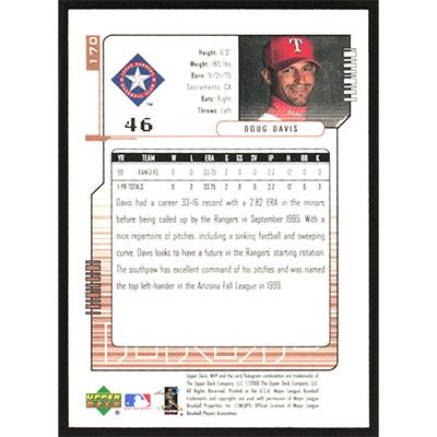 This is a 2000 Upper Deck MVP Doug Davis baseball card. The card is #170 and pictures show condition.