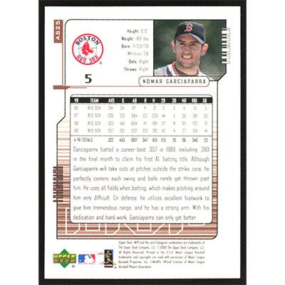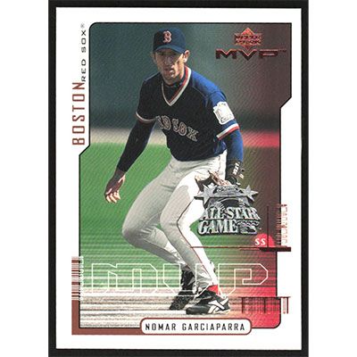 This is a 2000 Upper Deck MVP All-Star Game Nomar Garciaparra baseball card. The card is #AS25 and pictures show condition.