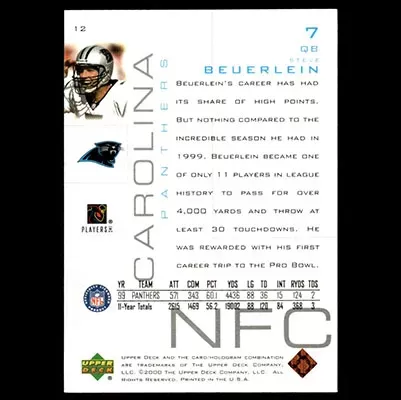 This is a 2000 Upper Deck Pros & Prospects Steve Beuerlein football card. The card is #12. See images for condition.