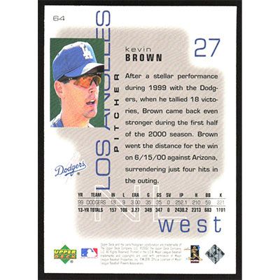 This is a 2000 Upper Deck Pros & Prospects Kevin Brown baseball card. The card is #64 and pictures show condition.