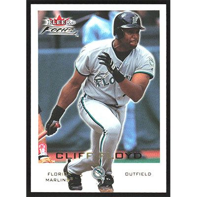 This is a 2001 Fleer Focus Cliff Floyd baseball card. The card is #148 and pictures show condition.