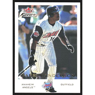 This is a 2001 Fleer Focus Garret Anderson baseball card. The card is #35 and pictures show condition.
