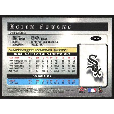 This is a 2001 Fleer Futures Keith Foulke baseball card. The card is #33 and pictures show condition.