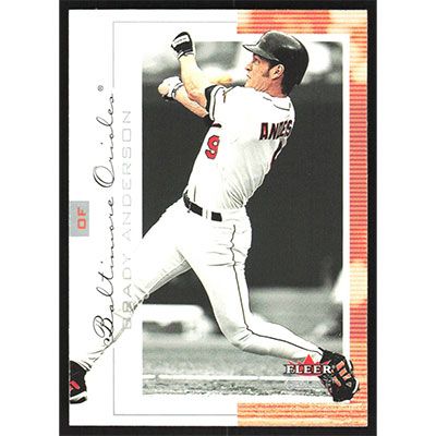 This is a 2001 Fleer Genuine Brady Anderson baseball card. The card is #55 and pictures show condition.