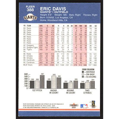 This is a 2001 Fleer Platinum Eric Davis baseball card. The card is #388 and pictures show condition.