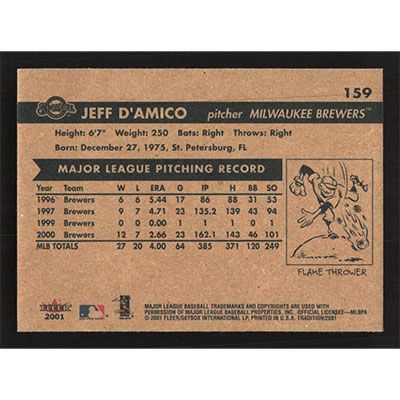 This is a 2001 Fleer Tradition Jeff D'Amico baseball card. The card is #159 and pictures show condition.