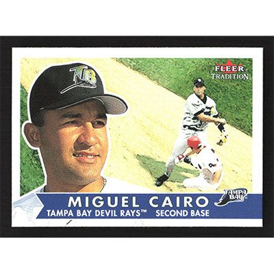 This is a 2001 Fleer Tradition Miguel Cairo baseball card. The card is #203 and pictures show condition.
