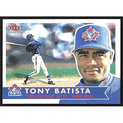 This is a 2001 Fleer Tradition Tony Batista baseball card. The card is #205 and pictures show condition.