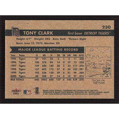This is a 2001 Fleer Tradition Tony Clark baseball card. The card is #230 and pictures show condition.