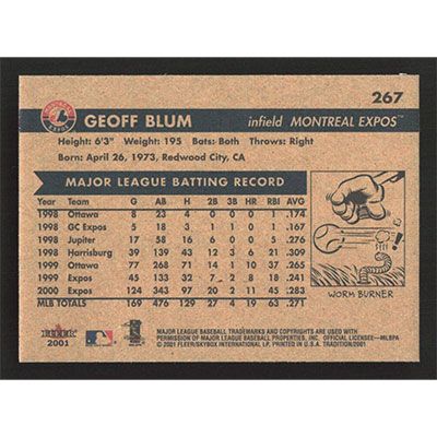 This is a 2001 Fleer Tradition Geoff Blum baseball card. The card is #267 and pictures show condition.