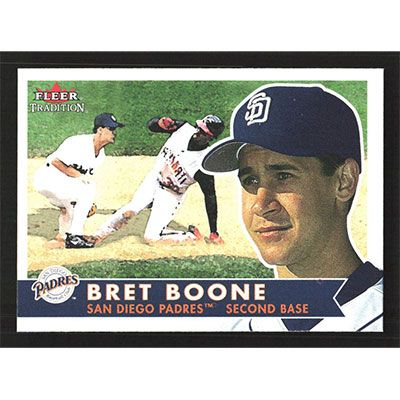This is a 2001 Fleer Tradition Bret Boone baseball card. The card is #291 and pictures show condition.