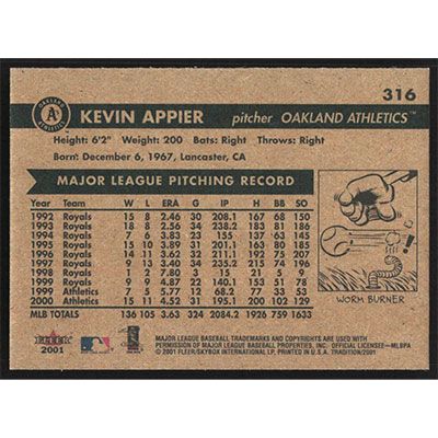 This is a 2001 Fleer Tradition Kevin Appier baseball card. The card is #316 and pictures show condition.
