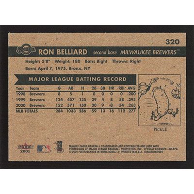 This is a 2001 Fleer Tradition Ronnie Belliard baseball card. The card is #320 and pictures show condition.