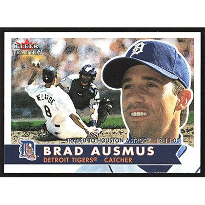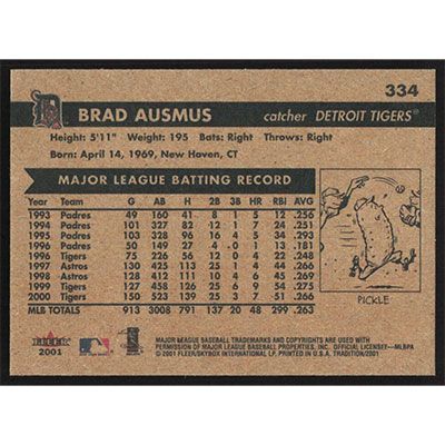 This is a 2001 Fleer Tradition Brad Ausmus baseball card. The card is #334 and pictures show condition.