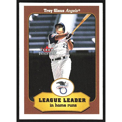 This is a 2001 Fleer Tradition Troy Glaus League Leaders baseball card. The card is #396 and pictures show condition.