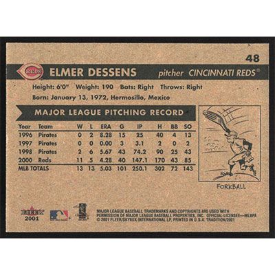 This is a 2001 Fleer Tradition Elmer Dessens baseball card. The card is #48 and pictures show condition.