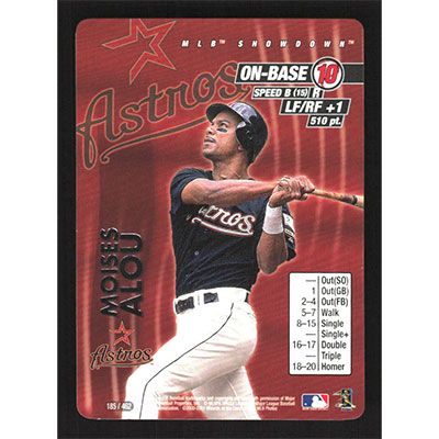 This is a 2001 MLB Showdown Unlimited Moises Alou baseball card. The card is #185 and pictures show condition.