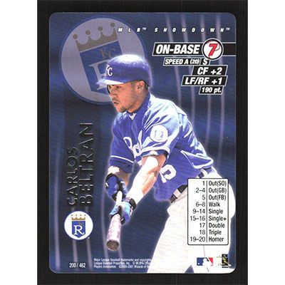 This is a 2001 MLB Showdown Unlimited Carlos Beltran baseball card. The card is #200 and pictures show condition.