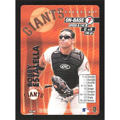 This is a 2001 MLB Showdown Unlimited Bobby Estalella baseball card. The card is #372 and pictures show condition.
